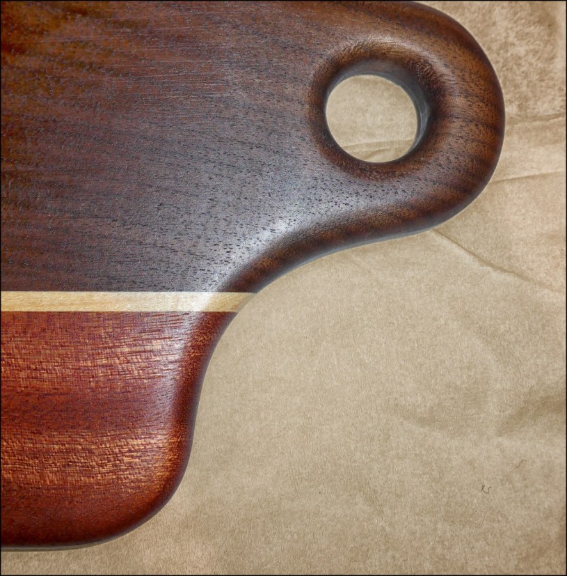 This new gadget enabled me to sand both inner and outer curves of the breadboard. I used the 75mm spindle fitted with a 240 grit sleeve. I could have installed the 13mm spindle and sanded inside the hole as well but that was already quite smooth.
