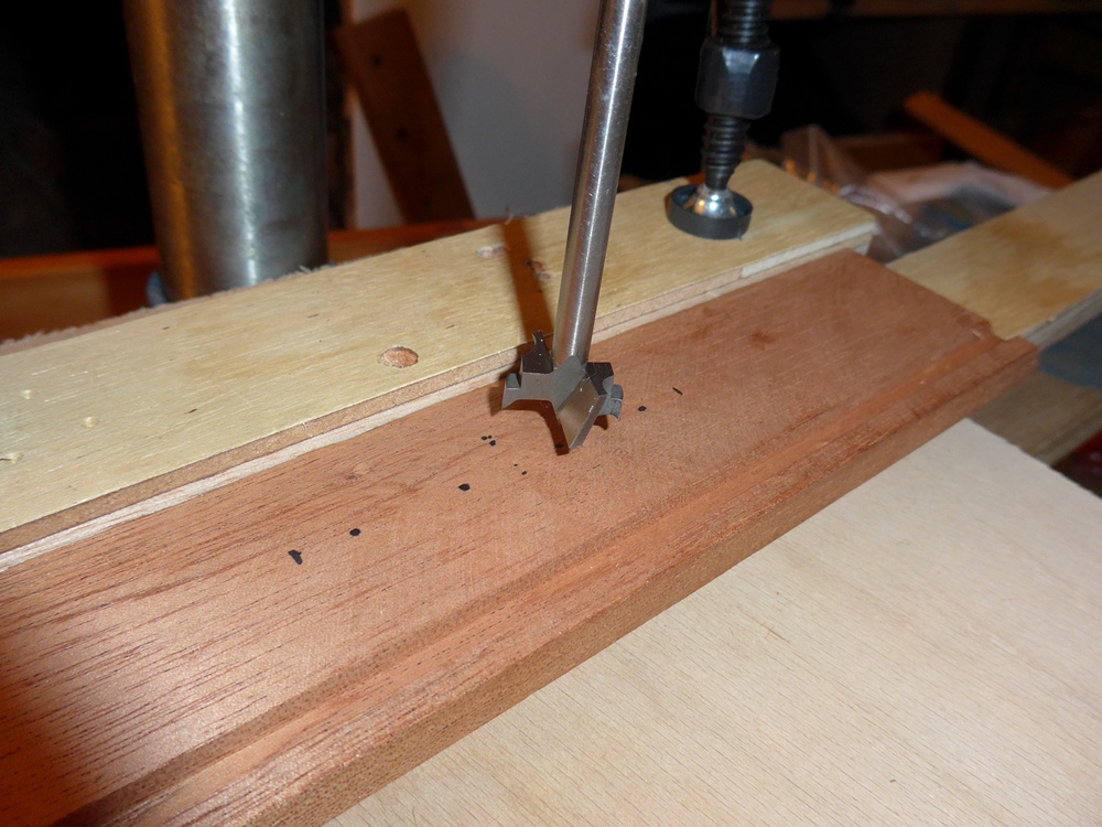 The handles would be 20mm x 80mm and 10mm from the top. So I started by drilling four 20mm holes using a fence on the drillpress to ensure they were all the same distance from the edge