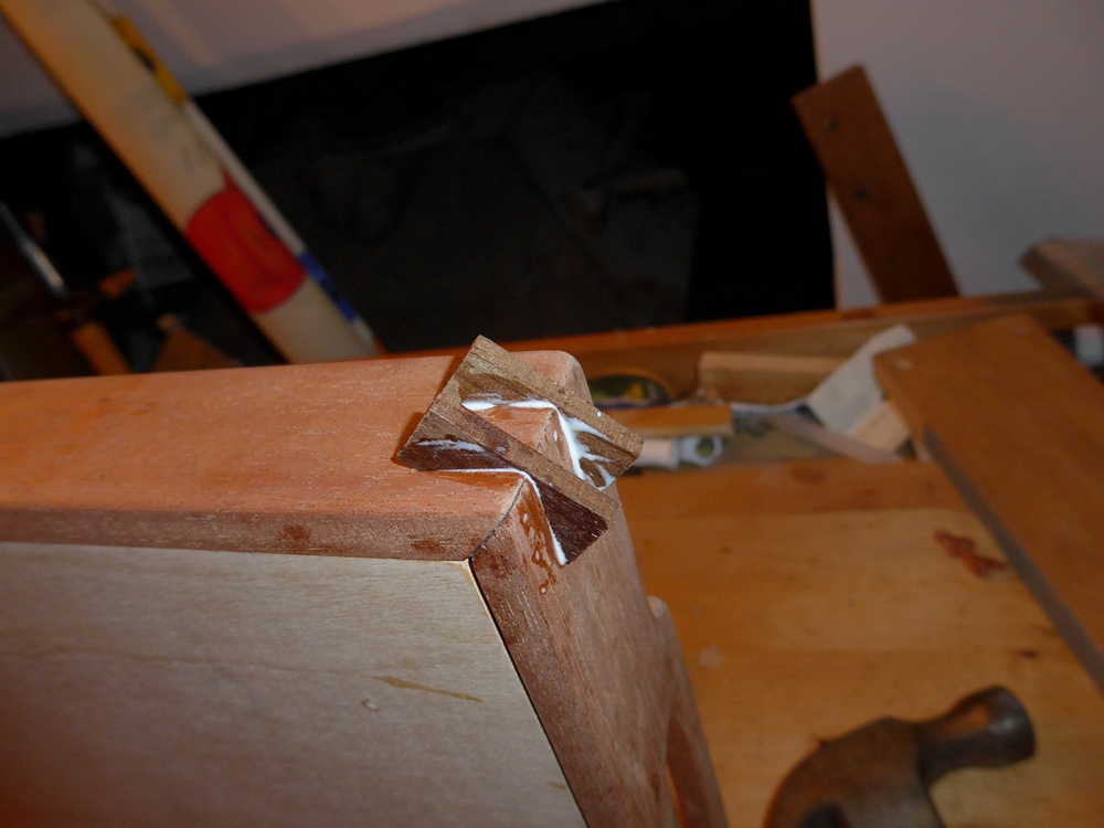 With the help of a hammer I glued and tapped them into the slots. I wasn’t worried about glue squeeze-out here because it would be sanded smooth later