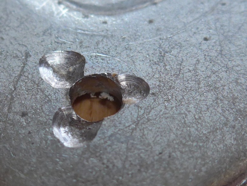 .. and then drilled a countersunk hole at those points just to the depth where the edge of the countersink overlapped the edge of the 4 mm hole